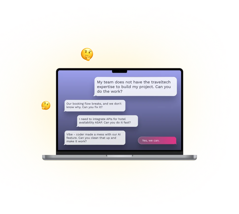You bring the ideas — AI features, new marketplaces, or smarter pricing tools. As a dedicated travel software development team, we turn those ideas into working products and integrations so you can stay focused on the business.