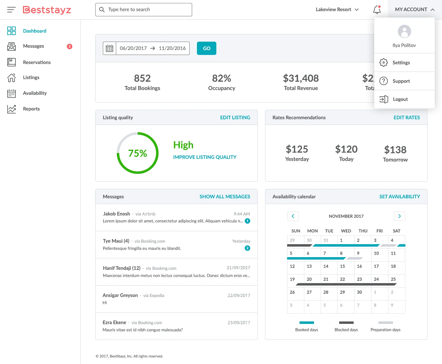 BestStayz had the idea of creating a Property Management System for homeowners who own a small number of properties to easily manage and monitor all the information in one place.